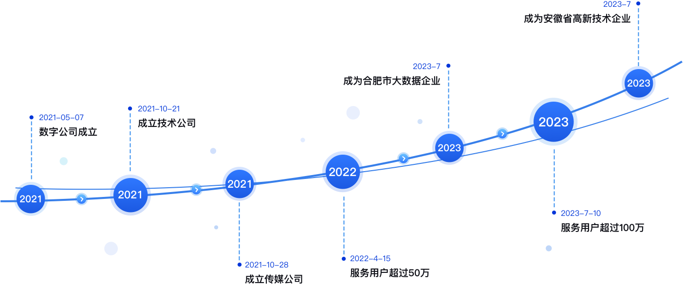 公司于2021年5月份成立,目前主要負責智慧肥西政府端及居民端建設、干事檔案開發、廣告位管理等項目的代建及運營工作,并于2021年11月分別組建了軟件類和傳媒類全資子公司。